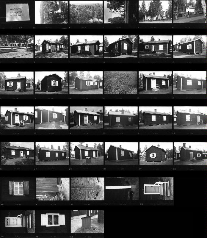 Älvsby sn, Älvsbyn. Älvsbyns kyrkstugor. 0A-1A. Vy från kyrktornet. 2A-3A. Älvsbyns kyrka. 4A. Bårhus. 5A. Nedre kyrkmalmen, våningshus. 6A. Servicehus, nedre kyrkmalmen, framsida. 7A. Kyrkstuga nr 63, framsida. 8A. Kyrkstuga nr 63, baksida. 9A. Kyrkstuga nr 75, framsida. 10A. Kyrkstuga nr 75, baksida. 11A. Kyrkstuga nr 66, framsida. 12A. Kyrkstuga nr 66, baksida. 13A. Servicehusets baksida. 14A. Miss. 15A. Kyrkstuga nr 64, framsida. 16A. Kyrkstuga nr 64, baksida. 17A. Kyrkstuga nr 61, framsida. 18A. Kyrkstuga nr 61, baksida. 19A. Kyrkstuga nr 62, framsida. 20A. Kyrkstuga nr 62, baksida. 21A. Kyrkstuga nr 65/30. 22A. Kyrkstuga nr 30/65. 23A. Kyrkstuga nr 67, framsida. 24A. Kyrkstuga nr 67, baksida. 25A. Kyrkstuga nr 74, framsida. 26A. Kyrkstuga nr 74, baksida. 27A. Kyrkstuga nr 71, baksida. 28A. Kyrkstuga nr 71, framsida. 29A. Fönster, kyrkstuga nr 62. 30A-32A. Detalj, knut. 33A. Dörr, stuga nr 75. 34A. Dörr, stuga nr 63. 35A. Fönster, stuga nr 71. 36A. Vattenpost.