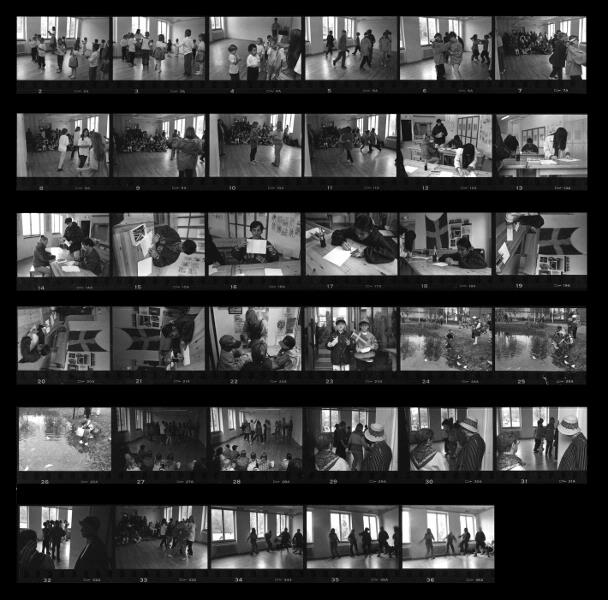 Luleå stad. Norrbottens museum. Nationaldagsfirande på Norrbottens museum 1995. 2-4 Barbro Kusofskys barnbalettgrupp dansar på museet. Förskolebarn. 5-11 Elever från klass 5, Västra skolan dansar med danspedagogen Christer Wallin. 12-21 Flaggverkstad i Konten. Måla din egen flagga. Flaggorna blev sedan ett flaggspel i trapphuschaktet. 22 Barnen viker blå och gula vikingaskepp tillsammans med en vikingaguide. 23 Nationaldagsfirande barn på museets trappa. 24-26 Vikingaskeppen av papper sjösätts i museiparkens damm. 27-36 Elever från klass 5, Västra skolan dansar med danspedagogen Christer Wallin.