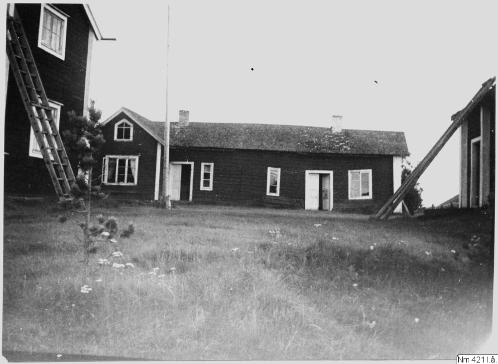 Gamla prästgårdsbyggnaden från Laestadii tid. Utbyggnaden till vänster tillbyggd under kyrkoherde Westesons tid. Till vänster i förgrunden nya prästgården från år 1923. Till höger Laestadii pörte.
