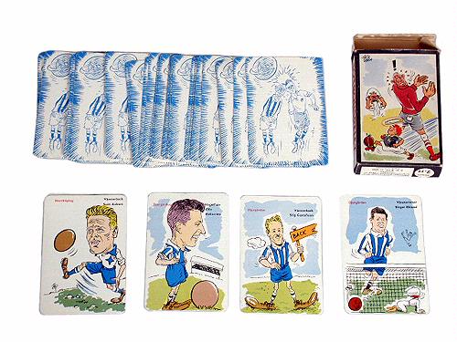 Kortspel med namnet "fotbollspelet" som består av 48 kort där var av ett heter "bollkalle" och ett litet häfte med spelregler fram och där baksidan består av karikatyrer på fotbollsspelare som tecknats av Börje Dorch. Vid gavlarna finns klubbmärken av AIK, DIF, IFK Norrköping och HIF. Priset på kortspelet var 2:50 kr. Antal kort är lika med 48+1+1 = 50 st.