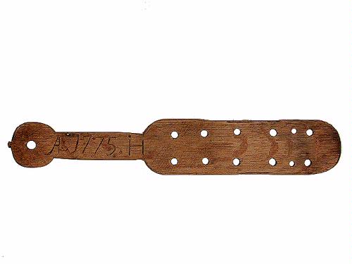 • Revsticka. Spadliknande revsticka med 12 hål. Märkt på skaftet: C h.F.L.A. 1775. H.