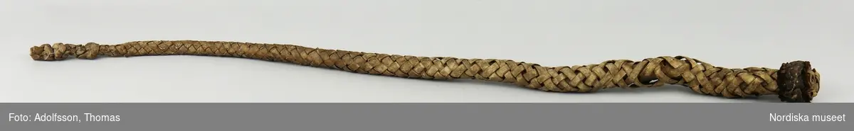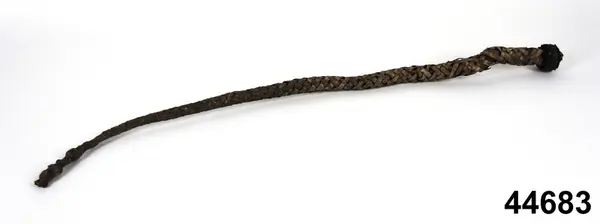 Huvudliggaren (år 1884): " 'Prytzens dagg fr. V. Fernebo kyrka, Vagnsbro hd, Västmanland. En af skinn omkr. tjurpes flätad knutpiska, som skall hafva tillhört och begagnats i kyrkotuktens intresse, både inom och utom kyrkan, af den beryktade Väster Fernebo prosten Nils Prytz, f. 1605, d 1688.' Vidare se bilagan 44.683. G. fr. V. Fernebo kyrka enl. kyrkostämmobeslutet af d. 28 sept. 1884 gm studenten A. Engdahl. Ank. 12/10 1884." Från Nordiska museets blogg 2015: "Prytzens dagg, en knutpiska från 1600-talet april 2015 2015-04-01 12:04 Den här knutpiskan har använts av prosten Nils Prytz (1605-1689) när han höll sin församling i Västmanland i herrans tukt och förmaning. Prytz har gått till historien som sällsynt rå, brutal, intrigerande och otrevlig. Knutpiskan är gjord av en tjurpenis överklädd med läder. Den skänktes till Nordiska museet av Västerfärnebo kyrkostämma 1884. Det fanns en till, men den ville kyrkan ha kvar. Det berättas att församlingsborna, mitt under pågående predikan, kunde börja prata, ta fram tobakspiporna, flinta eld och röka. Då tillkallade Prytzen klockaren eller kyrkstöten, eller sprang själv ner från predikstolen, för att med hjälp av daggen tukta de uppstudsiga. Han lär också ha misshandlat och fördrivit sina adjunkter. Sin klockare slog han fördärvad. Den stackars prästen Engzelius som skulle prova till komminister hittade ingenstans att bo i socknen därför att ingen av sockenborna vågade ge honom husrum. De visste att Nils Prytz med maktspråk tänkte tilldela sin egen son komministersysslan. Prosten Prytz hade ett spännande liv innan han kom till Västerfärnebo. Han föddes 1605 i Torpa socken i Strängnäs stift. Han gick i militärtjänst, deltog i 30-åriga kriget och blev uppmärksammad av Gustav II Adolf som erbjöd honom stöd och befordran om han ville studera till präst. Han blev magister vid svenska universitetet i Dorpat, Estland 1636 och kyrkoherde i Västerfärnebo 1649. Nils Prytz liv är en fascinerande resa genom 1600-talets militära och kyrkliga historia. Våld, ekonomisk korruption, intriger, nepotism och mycket annat kantar hans väg. Han dog 1689, fick sin grav i kyrkan, men saknades sannolikt av få. Det här är inte den enda piska i museets samlingar som påminner om överhetens tidigare rätt att använda våld mot anställda och husfolk. Här finns bland annat en som hållit gruvarbetarna i Sala i schack, en annan som använts av patronerna Benedickt på Gysinge för att tukta bruksarbetarna, och en kyrkvaktmästarpiska som gjorde tjänst när hundarna skulle drivas ut ur kyrkan. Källor: NM.0044683 Nordiska museets huvudliggare med bilagor. Muncktell, Johan Fredric, 1764-1848. - Westerås stifts herdaminne / af Joh. Fr. Muncktell. - 1843-1846. Selin, Sten: Nils Prytz är Gud allena räkenskap skyldig, en karriär i stormaktens Sverige, 2010."