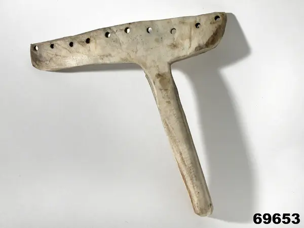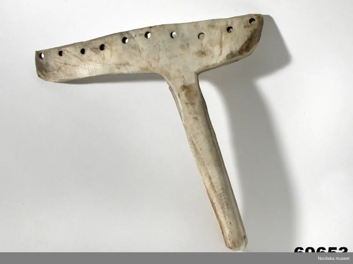 "Refsticka fr. Enontekis kapellförs. Finska lappmarken. Från Kätkesuando. Af renhorn. Brukas att refva garn på till stora väfvar. Ink. af jägmästaren Hugo Samzelius jämte 69.654. 1891. Bil. Samzelius 355."