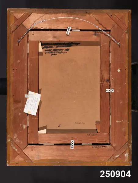 Katalogkort: "HL: 'porträtt av en liten flicka, enl. uppgift Mariana Albertina Hammer (1867-1950), olja på duk, 3/4-porträtt i skär klänning med docka i hanaden, på baksidan övermålad inskrift; profilerad, förgylld ram." Pendang till 250903. Troligen har Carl P Lehman målat porträttet. En lapp skriven på baksidan: 'Detta porträtt föreställer min farmors syster Marianne Hammer (1866-1950) Stockholm d. 6.4. 1968 Stig de Berg.' PS/81 " [=Per Sjögren, tavelinventering 1981]