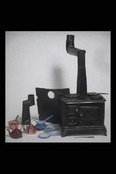 Inventering Sesam 1996-1999: L 37,5 B 30,5 H 31 (cm) Leksaksspis (a+) för vedeldning, av gjutjärn, fält med vegetativt mönster och meanderbård på front och sidor, rektangulärt liggande form på fyra svängda fötter, häll med tre kokplattor, spisten, löstagbara ringsatser, öppningsbar eldstadslucka, asklucka, stekugn och sotlucka, på fronten ingjutet fabriksmärke "HUSQVARNA No 2". Tillhörande spiskrok, tredelat skorstensrör med separat skyddsplåt samt bakplåt och långpanna (a+). Tillhörande kokkärl: b) Munkpanna av gjutjärn. c) Plättlagg av gjutjärn. d+) Roterande våffeljärn av gjutjärn, med fals och två hänklar. e) Stekpanna av emaljerat gjutjärn, utvändigt blått, invändigt vitt. f+) Stor kastrull med fläns och lock, av emaljerad plåt, utvändigt blå, invändigt vit. g+) Liten kastrull som ovan, utan fläns. h+) Kastrull med lock, av koppar, invändigt förtent, handtag och lockknopp av mässing. i+) Kaffepanna med lock, av koppar, invändigt förtent. j+) Kaffepanna med lock av emaljerad plåt, utvändigt brun, invändigt vit. Har tillhört givarinnan och använts av henne vid 1900-talets början. Anna Womack april 1997