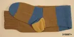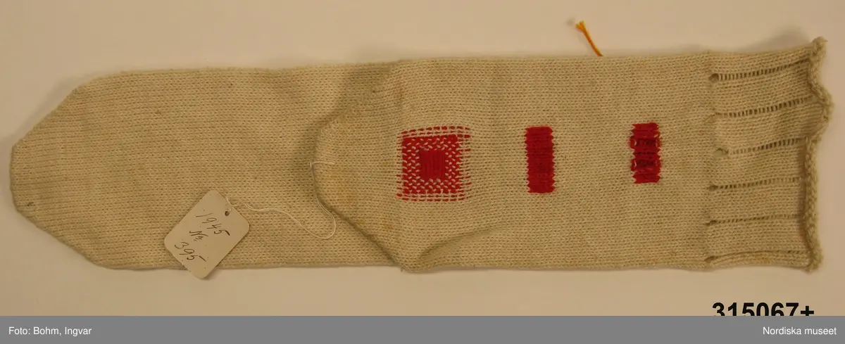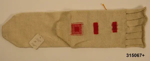 Utställningstext i Skolslöjd (2012): Slöjdinspektrisens makt Det var slöjdinspektrisen som bestämde vad eleverna skulle göra i varje årskurs. Hon var utsedd av skolförvaltningen och träffade alla textillärare för att visa sina modeller. Här syns vad Stockholmseleverna skulle göra. Lärarna talade om hur många elever de hade i varje klass, och inspektrisen såg till att skicka rätt antal meter skolrutigt tyg till skolans materialansvariga. Ett motsvarande system fanns inom träslöjden. Men i slutet av 1950-talet började vissa lärare protestera mot den hårda styrningen uppifrån och på 1960-talet blev undervisningen modernare. Klass 1 Stockholms slöjdinspektris Elsa Valentin anser att barn ska få vara barn. De syr matta och kläder till dockan i stället för duk till fotogenlampan, som föregångaren Hulda Lundin förespråkat. Trådarna som blir över från fransningen blir en tomte. Elsa Valentin var slöjdinspektris i Stockholm 1922-50 och gav ut en egen handbok i slöjd. Klass 3 Eleverna i Stockholm besökte ofta Skansen, och då skulle de ha smörgåsarna i midjeväskan som de sytt i slöjden. Tyget är typiskt grått från krigsåren. Klass 5 Pedagogiskt och tydligt visas strumpans olika delar i olika färg. Den fanns med redan på 1890-talet i Hulda Lundins plansch, som syns på långa väggen. /Maria Perers