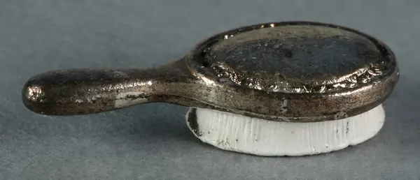 Toalettartiklarna tillhör inredningen i sängkammaren på andra våningen i dockskåp NM.0331721+. Dockskåpet är tillverkat av givarens far och avbildar familjens hem som det såg ut med inredning och allt, när de mellan åren 1960-1978 bodde i en villa i Nockeby. Huset byggdes på 1930-talet och finns fortfarande kvar. Det har källare, vind, två våningsplan och en liten trädgård. Pappan, som på den tiden var vice VD för Johnsonkoncernen, ägnade all fritid åt samvaro med sin förståndshandikappade son. Denne älskade att leka med husmodellen som pappan byggt och behöll den livet ut som ett kärt minne. För honom hade hemmiljön stor betydelse och han tyckte om att varje sak fanns på rätt plats. Dockskåpet kom att spela en viktig roll i kommunikationen mellan dem. Givaren hade redan flyttat hemifrån 1972 när dockskåpet blev färdigt, så hon har själv inte lekt med det. Hon förklarar: "Sedan mina föräldrar och Stellan flyttade till Skåne 1978 har min bror haft huset i sitt stora kök i Ängelholm. Där har han ägnat en stund varje helg åt att 'leka' med det som han kallade det. Med det menade han mest att han lyfte av de olika etagen och tittade in. Självklart var det värdefullt även för mig att ha detta minne av ursprungshemmet där jag växte upp. Även om det mesta av inventarierna och tillbehören är inköpta ser det ungefär ut som jag minns det från vår tid i huset." Dockskåpet har tidigare haft invändig belysning men denna har inte fungerat på senare år. Föräldrarna var födda på 1920-talet. Pappan avled 1997 och brodern 2011 i Ängelholm. Mot slutet av sitt liv hade han främst huset till prydnad och minne av sitt föräldrahem. /Karin Dern 2011-10-14