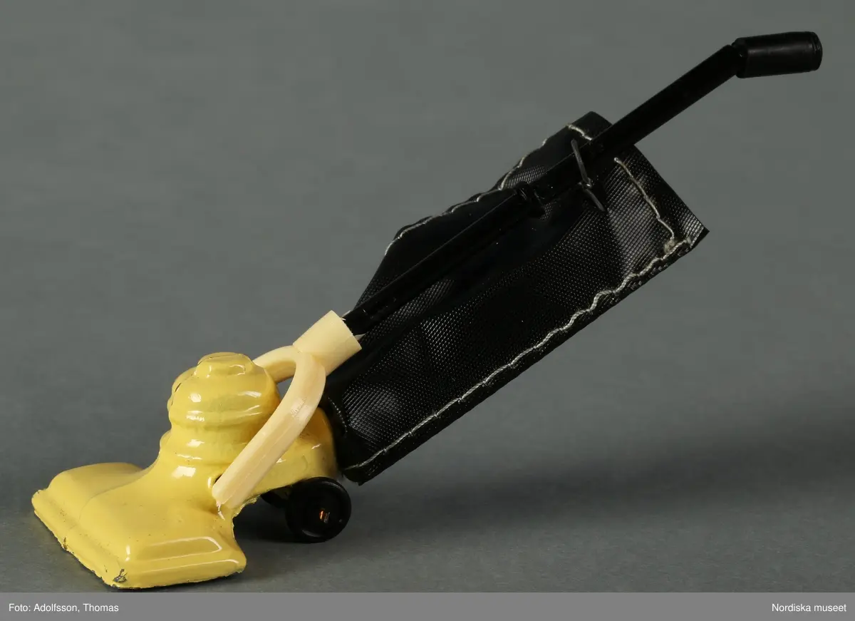 Dammsugaren hör till inredningen i städskåpet vid frukostrummet på första våningen i dockskåpet NM.0331721+. Dockskåpet är tillverkat av givarens far och avbildar familjens hem som det såg ut med inredning och allt, när de mellan åren 1960-1978 bodde i en villa i Nockeby. Huset byggdes på 1930-talet och finns fortfarande kvar. Det har källare, vind, två våningsplan och en liten trädgård. Pappan, som på den tiden var vice VD för Johnsonkoncernen, ägnade all sin fritid åt samvaro med sin förståndshandikappade son. Sonen älskade att leka med husmodellen som pappan byggt och behöll den livet ut som ett kärt minne. För honom hade hemmiljön stor betydelse och han tyckte om att varje sak fanns på rätt plats. Dockskåpet kom att spela en viktig roll i kommunikationen mellan dem.
