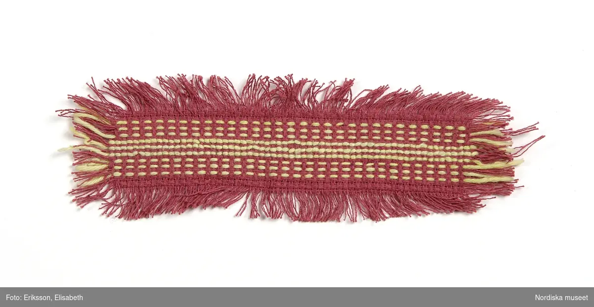 • Bokmärke av aidaväv, broderat med efterstygn och förstygn. Frans längs alla kanter.