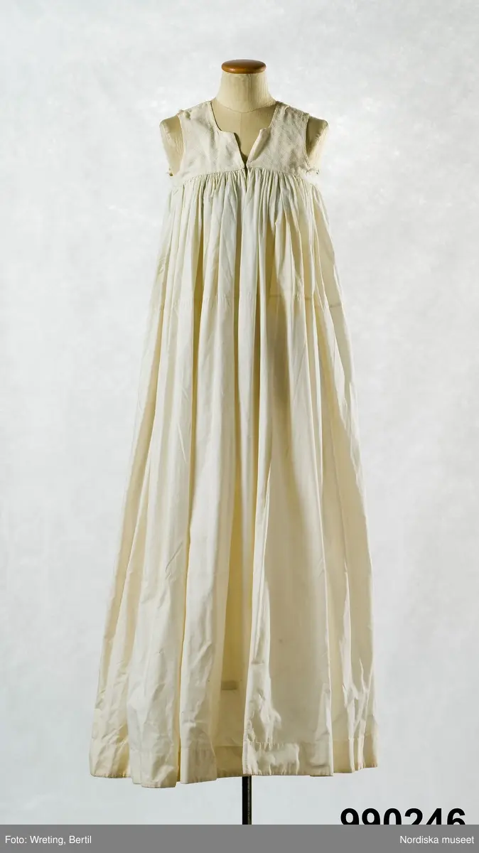 • Livkjol, vit med kort liv. Kjolen av vit fin bomullslärft, med 4 våder. Täta rynkor mot livet fram och bak, sprund mitt fram, kjolen skarvad tvärs över nedanför sprundet. Kjolkanten skodd med 7 cm av ... Visa hela