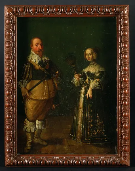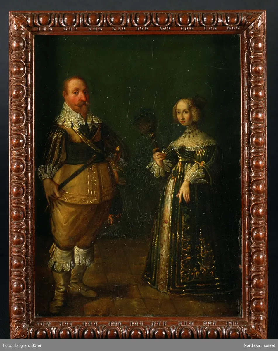 • Tavla föreställande Gustav II Adolf och Maria Eleonora. Nordiska museets föremål inv.nr 300768.