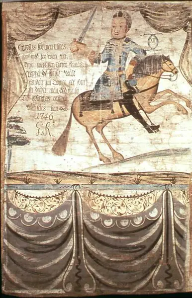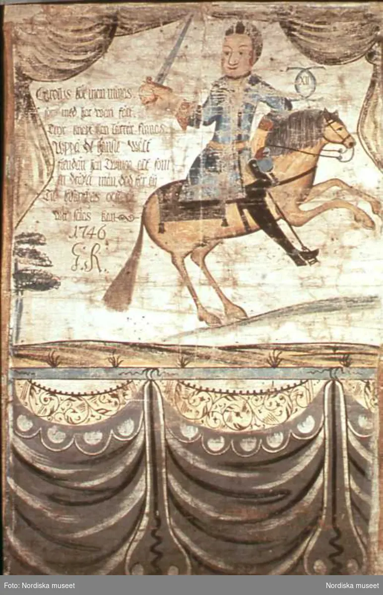 • Tavla från 1746 av Gustaf Reuter (1699-1783). Karl XII till häst.