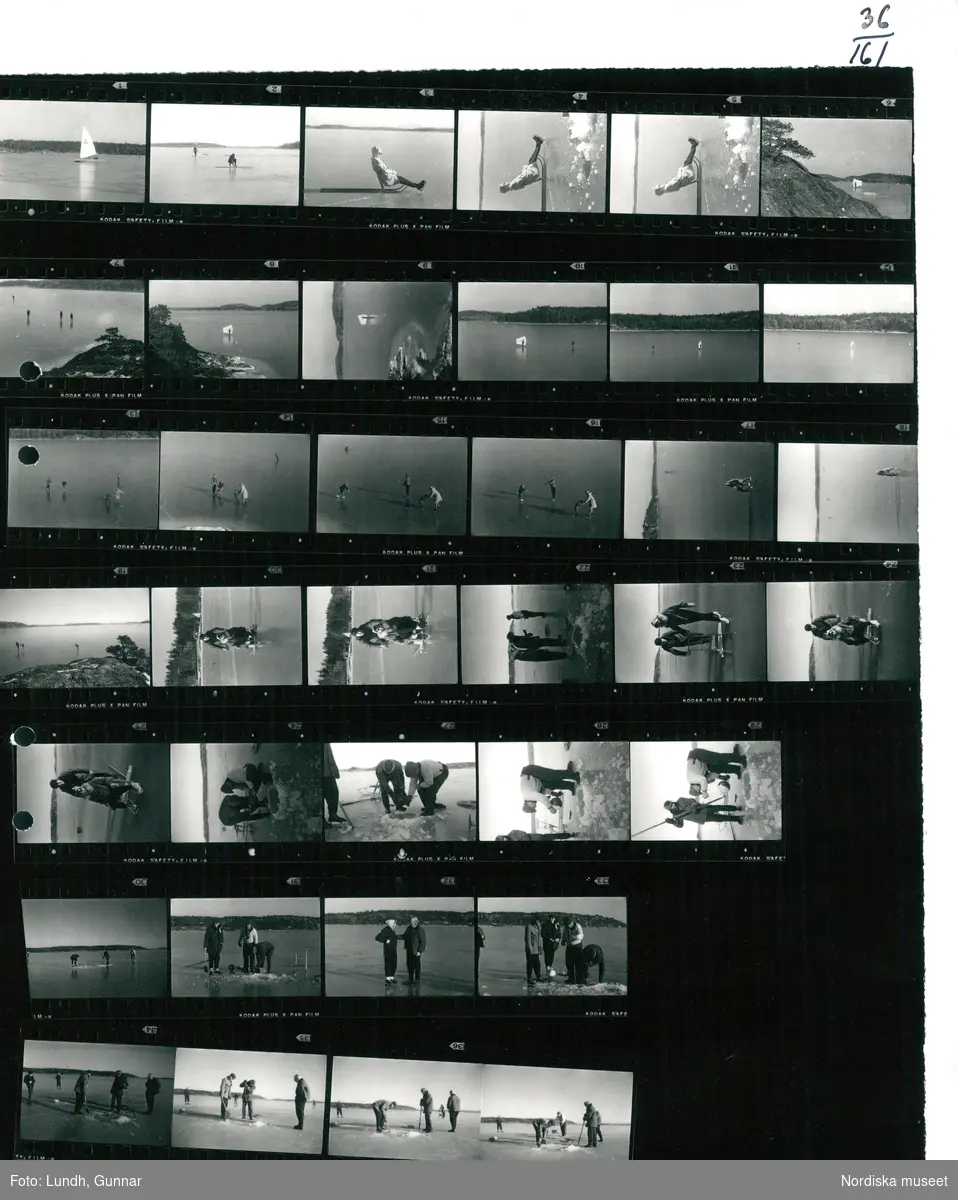 Kontaktkopior för Gunnar Lundhs serie med småbildsnegativ (Leica). Materialet är digitaliserat inom ramen för projektet Vardagens bilder och berättelser. Kulturella omvandlingar i Nordiska museets samlingar (VBB) som finansierats av Kungl. Vitterhetsakademien och Riksbankens jubileumsfond. Projektet genomfördes i samarbete mellan Nordiska museet och avdelningen för Etnologi vid Stockholms univers...