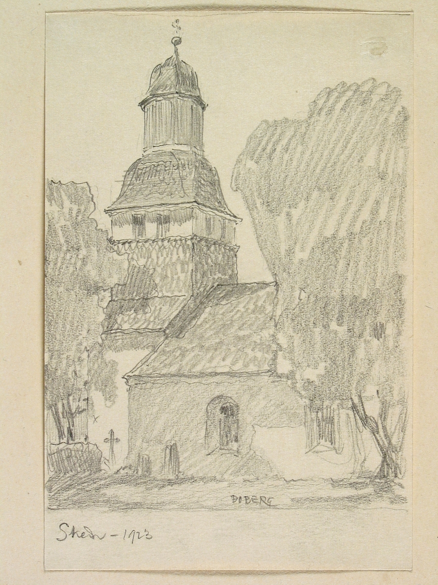 Teckning av Ferdinand Boberg. Östergötland, Hanekinds hd., Skeda kyrka