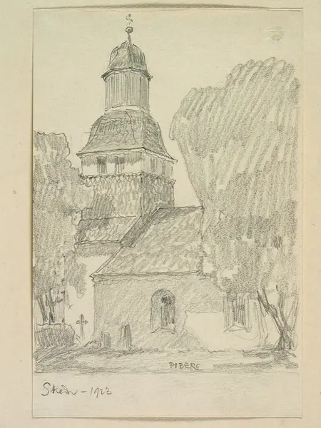 • Teckning av Ferdinand Boberg. Östergötland, Hanekinds hd., Skeda kyrka