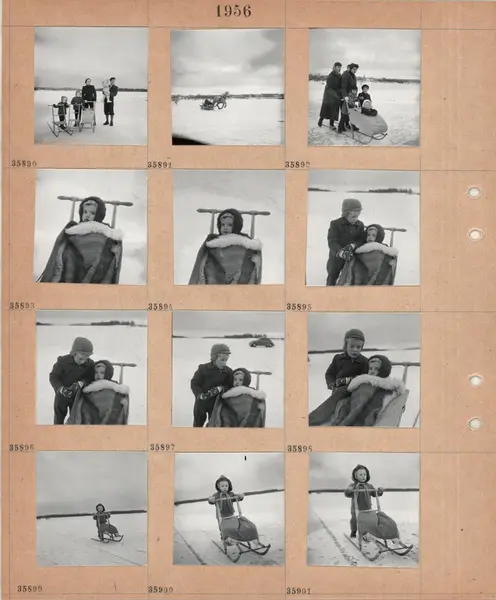 Kontaktkopior för Gunnar Lundhs serie med mellanformatsnegativ i storlek 6x6 cm (Serie T).