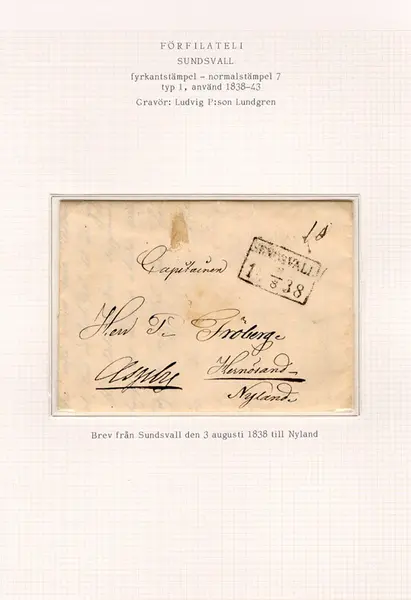 Albumblad innehållande 1 monterat förfilatelistiskt brev