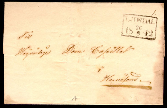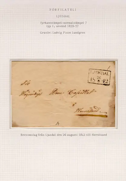 Text: Brevomslag från Ljusdal den 26 augusti 1842 till Hernösand