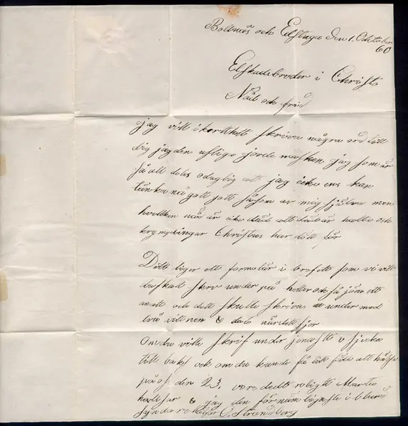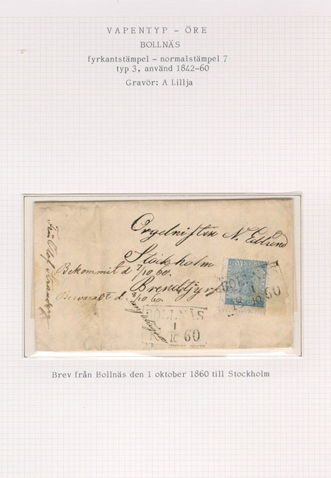 Text: Brev från Bollnäs den 1 oktober 1860 till Stockholm.