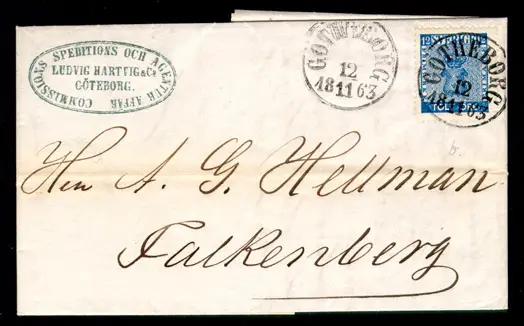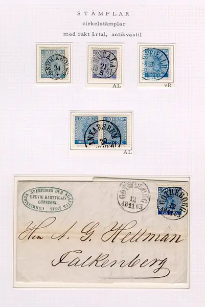 Albumblad innehållande 5 monterade frimärken, 5 x 12 öre Vapentyp(tillsammans med 1 monterat brev BREV0591b).