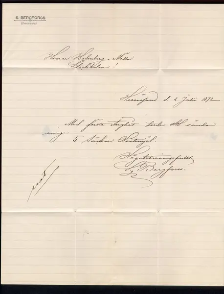 Text: Brev från Hernösand 2 juli 1872 (normalstämpel 10) till