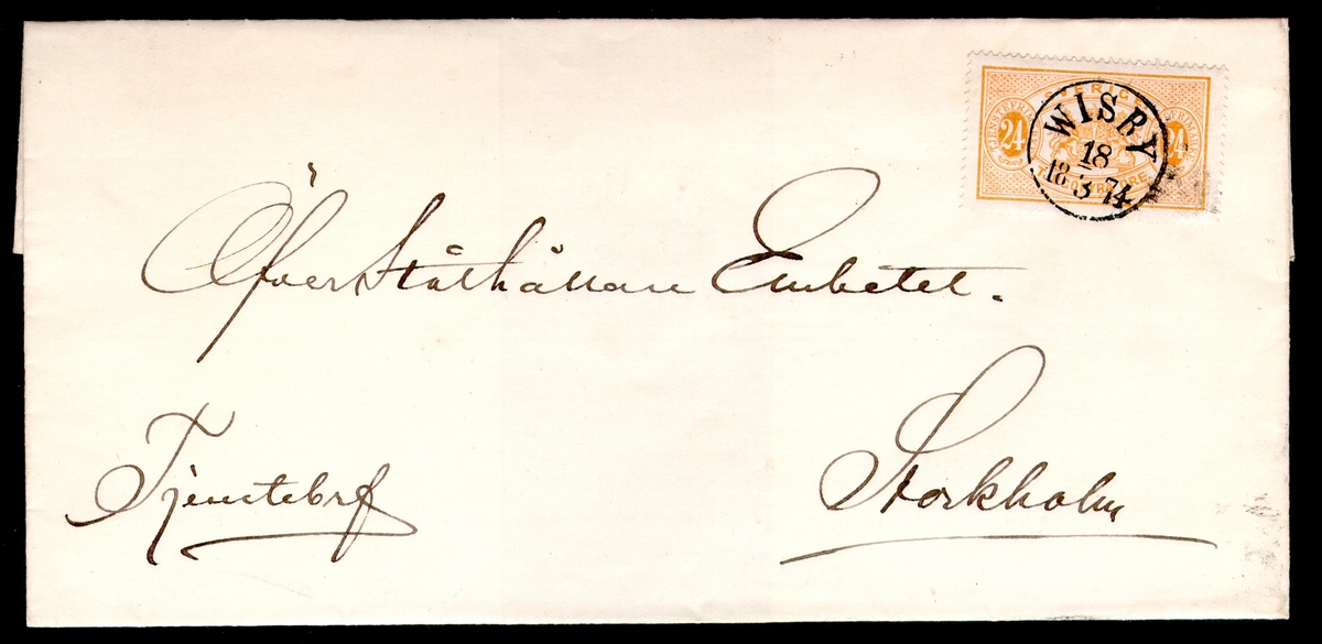 Tjänstebrev från Wisby den 18 mars 1874 till Stockholm, frankeratmed 24 öre Tjänstefrimärke, perf 14.
