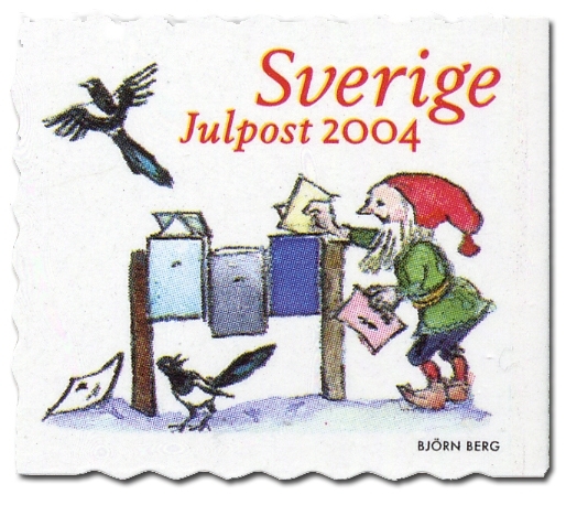 • 2, Konstnären bakom julfrimärkena är illustratören Björn Berg. Han har avbildat gröna tomtenissar med röda luvor som hämtar post, pratar i mobiltelefon, åker spark och hämtar gran.