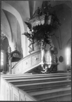 ÖVRIGA ÖPPNINGAR - I tornets övre del är parställda äldre ljudöppningar i söder, väster och norr, som är krönta av en blindering. Under tornets takfot sitter små skyttegluggar i alla väderstreck.