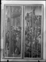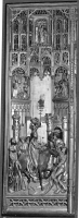 PORTALER Kyrkans västportal uppfördes år 1648. Portalen har en arkitektonisk uppbyggnad där den korgbågiga öppningen omramas av två fristående kolonner på vardera sidan. Kolonnerna står på postament och bär kraftiga konsoler. På konsolerna vilar ett bjälklag, vilket är förkroppat över konsolerna. Över bjälklaget finns ett putsat parti som binder samman portalen med tornets höga västfönster. Portens dörrblad består av kraftiga, hopnitade järnplåtar, vilka på baksidan är stagade med korslagda järnband.