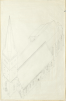 TAKLAG OCH YTTERTAK Långhuset och koret har sadeltak. Över koret har taket utsvängd nedre del och avvalmning över korets polygonala avslutning i öster. Sidokapellen i norr och söder har pulpettak. Tornets tornhuv av slutas av en lanternin krönt av en förgylld spira med ett klot nederst och en tupp överst. Samtliga yttertak har skivtäckning av kopparplåt. Takfallen har hängrännor och stuprännor av kopparplåt.