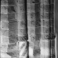 Fasadernas strävpelare är snedställda i anslutning till de olika byggnadsetappernas hörn, vilket i dagens heltäckande fasader i norr och söder kan framstå som något svårförståeligt. Mitt på de olika byggnadsetappernas murar är strävpelarna vinkelräta mot murarna.