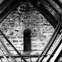 Tornets ljudgluggar har tegelornerade kalkstensomfattningar samt bågar av kalksten och kolonnetter med tillhörande baser och kapitäl av tjärat trä. Gluggarna är försedda med fågelnät av pälsdjursnät på träramar, och solbänkarna är klädda med bräder (falar). De fyra röstegluggarna i tornet har kolonnetter av samma utförande som i ljudgluggarna, solbänkarna är klädda med två lager tjärade falar, lagda med kraftig lutning. I tornets södra och västra fasader finns vardera en ljusglugg, och i korets gavelspets finns en rundbågig ljusglugg, samtliga med huggna kalkstensomfattningar och fågelnät av fjäderfänät.