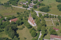 Taken, med undantag av korets norra takfall är försedda med hängrännor (svarta) och stuprör (vita).