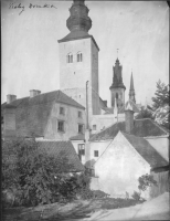Kyrkan har tre tornhuvar: två i öster och en i väster, samtliga i barockstil, de östra smäckrare och mer detaljrikt dekorerade. Dessutom en mindre, plåtklädd takryttare på taket över Stora kapellet.