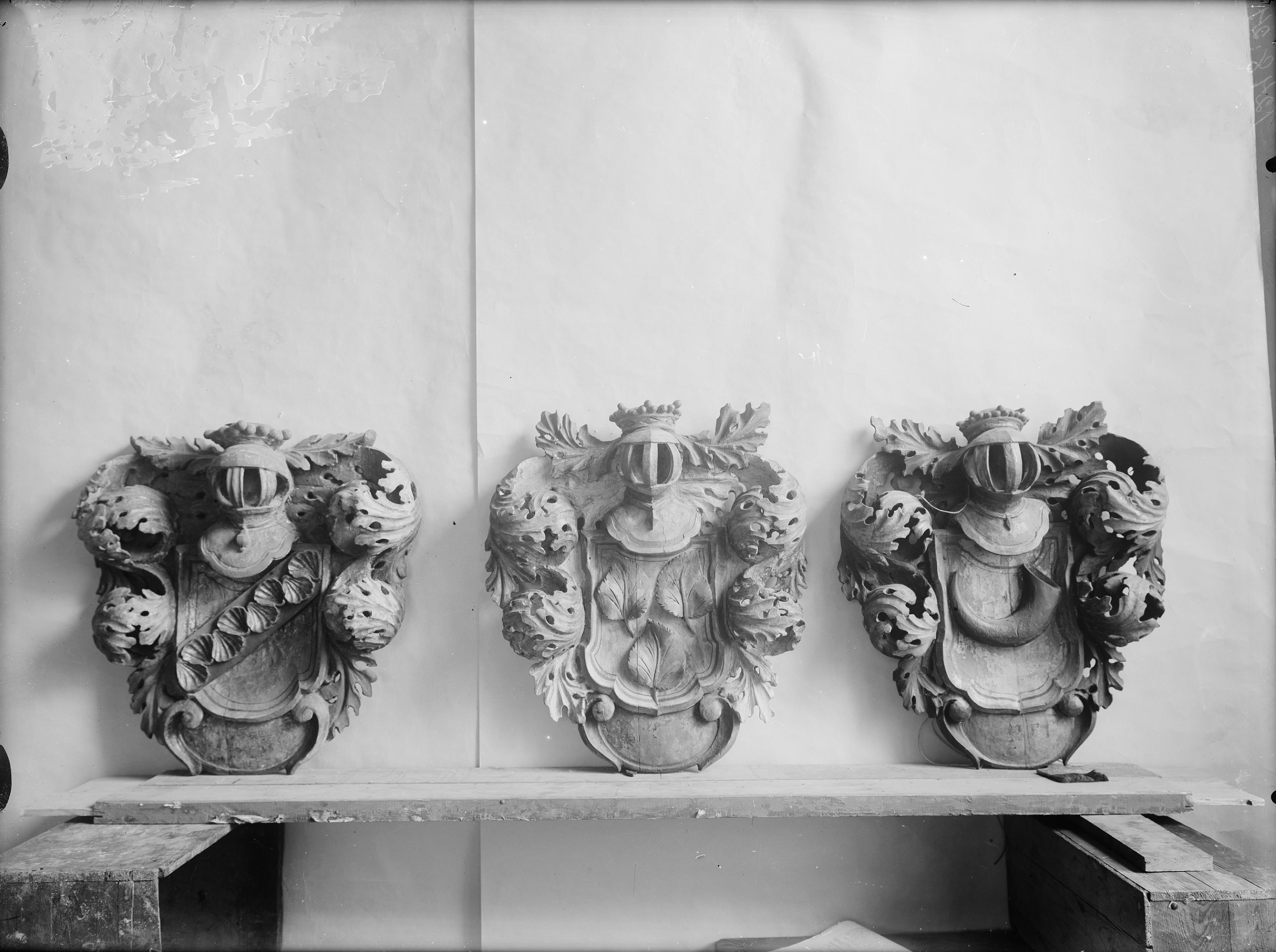 • Vapensköldar med von Delvigs, Ribbings och Horns vapen. Efter restaurering av Alfred Nilson.