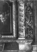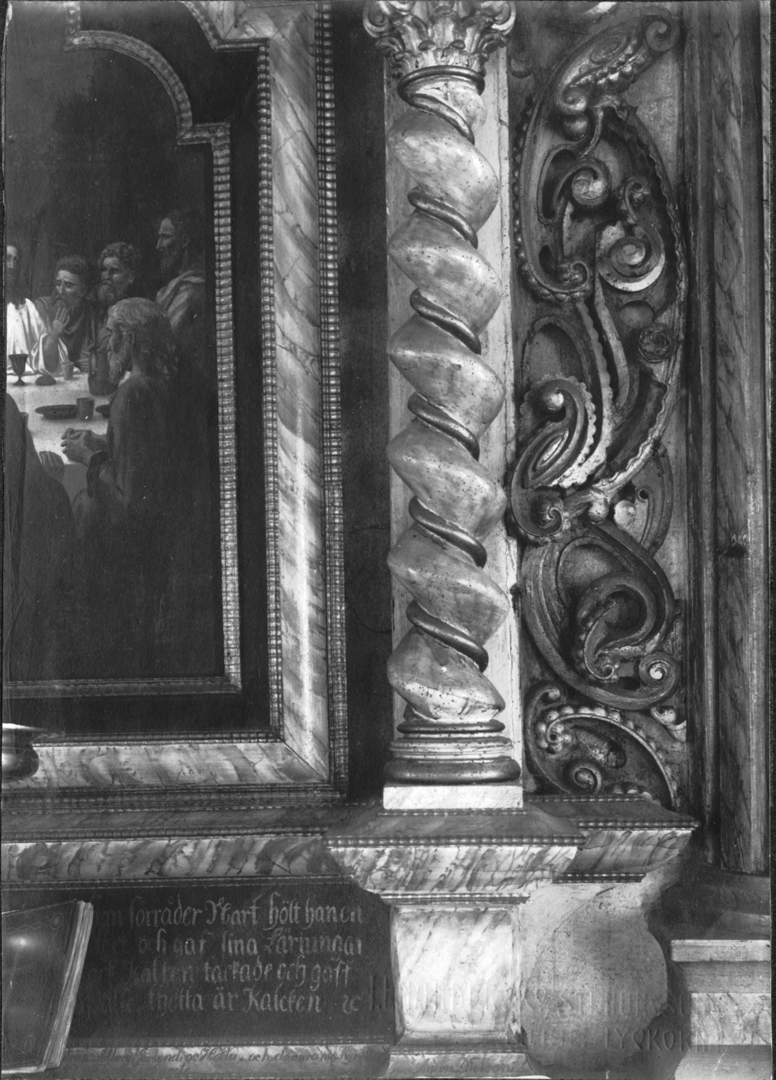 • Pelarna före konserveringen. Altaret tillhörde den nedbrunna kyrkan.