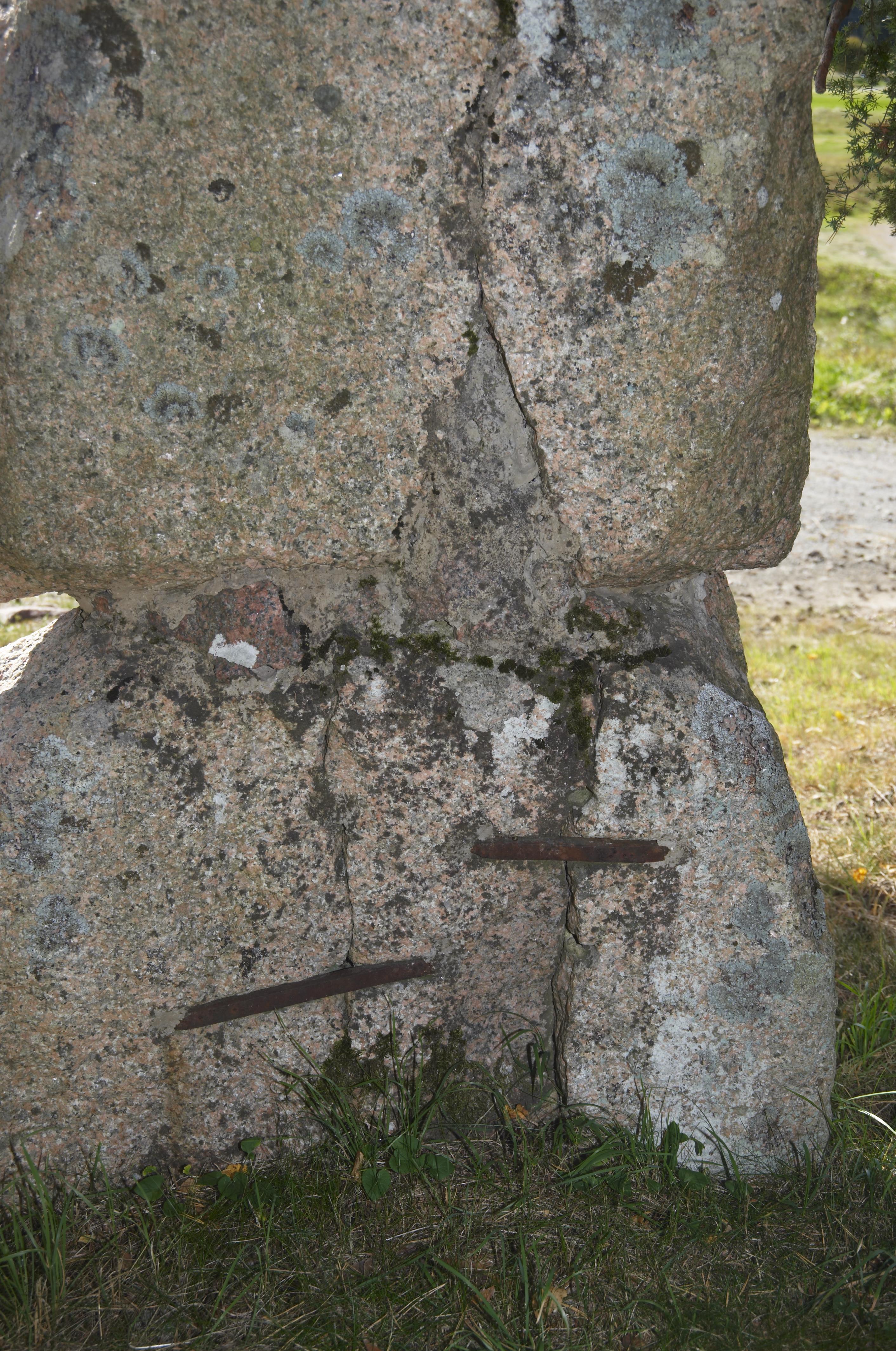 • RAÄ-nummer Uppsala-Näs 97:1. Runstenen bakifrån. Inskriften lyder: "Åbjörn och Holmbjörn (?) och Saxe läto göra minnesmärket efter Anund, sin fader".