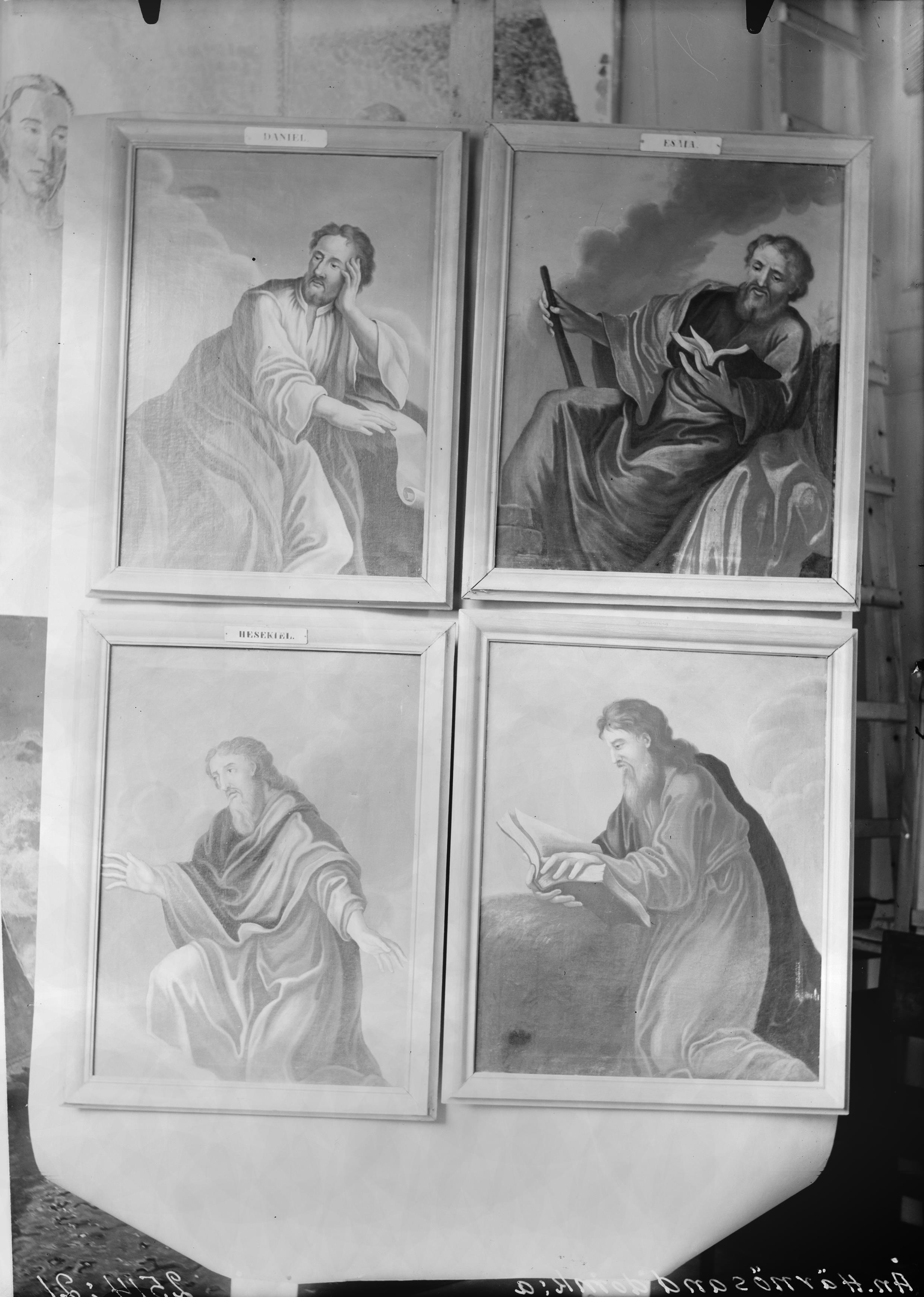 • Oljemålningar föreställande Daniel, Esaua Hesikiel, Jeremias. Före konservering.