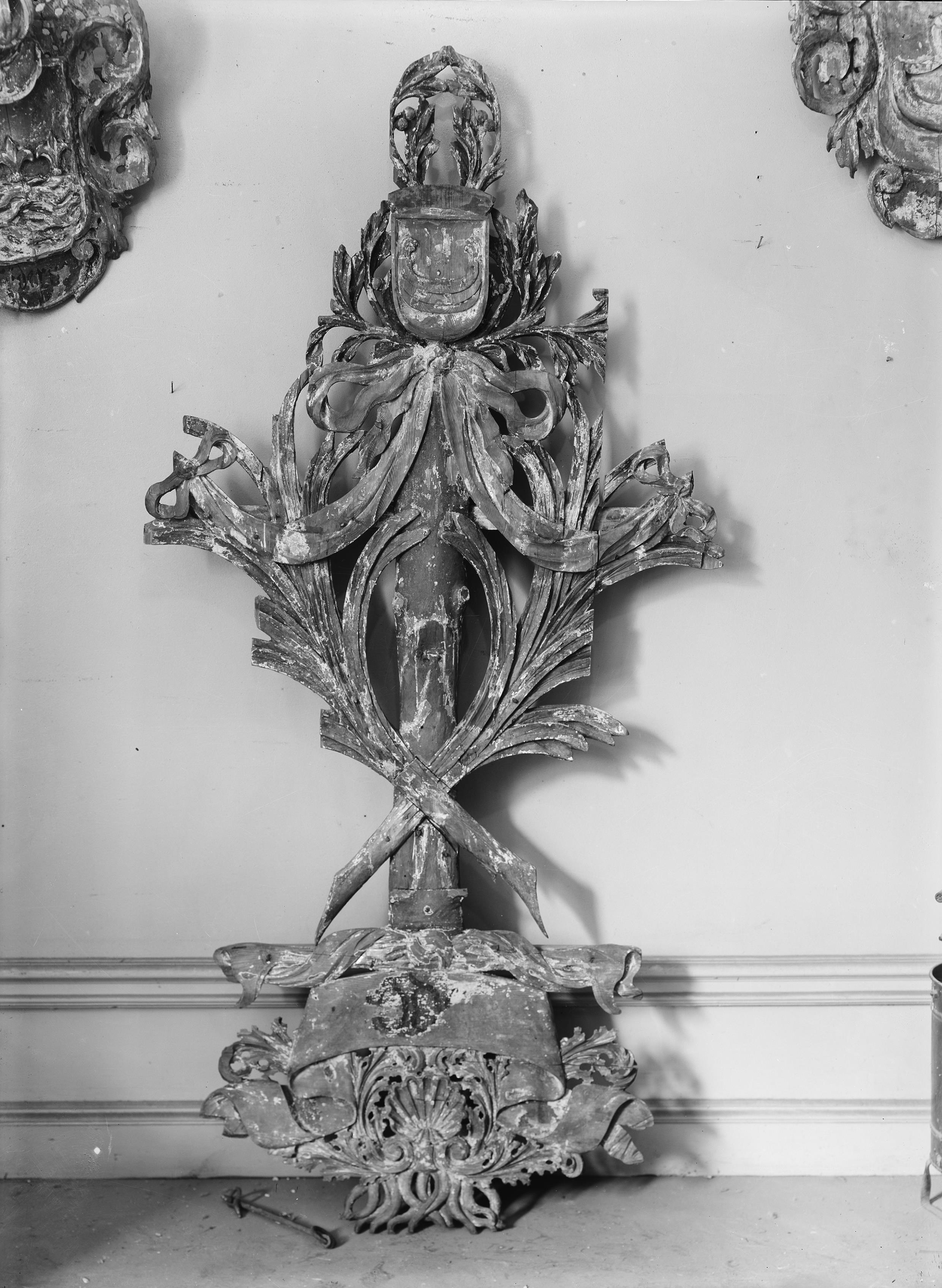 • Vapensköld med Bååts vapen, Henric Henricsson Horns andra hustru Kjerstin Bååt. Snabbinv. Före restaurering.