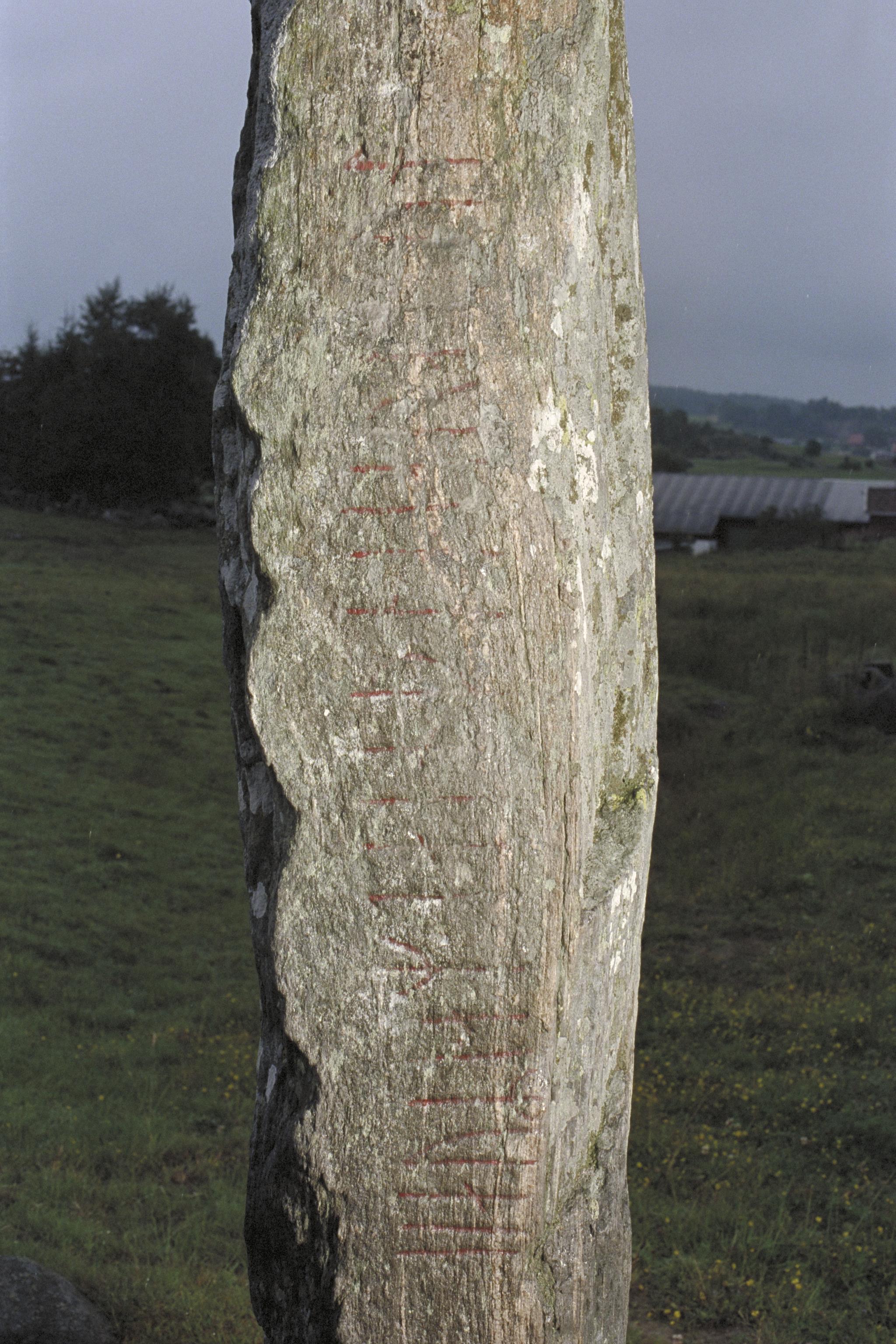 Införlivades i Runskadeprojektet år 2000. Den 250 cm höga stenen har en kort runtext endast på V smalsida. Om tolk...