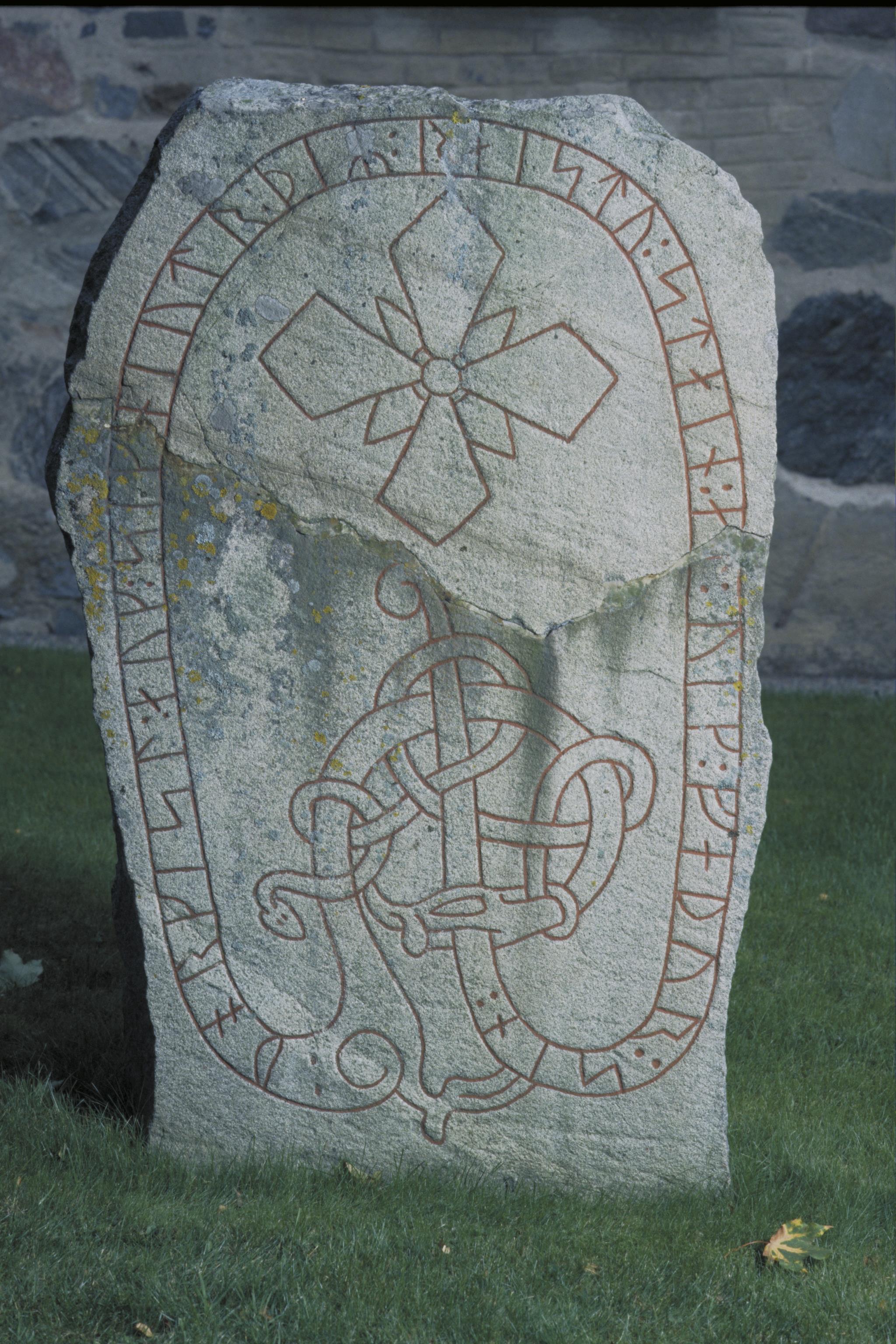 Inskriften lyder: Torgils och Signjut de reste stenen efter Vig, sin fader. Fotosyfte: Publicering