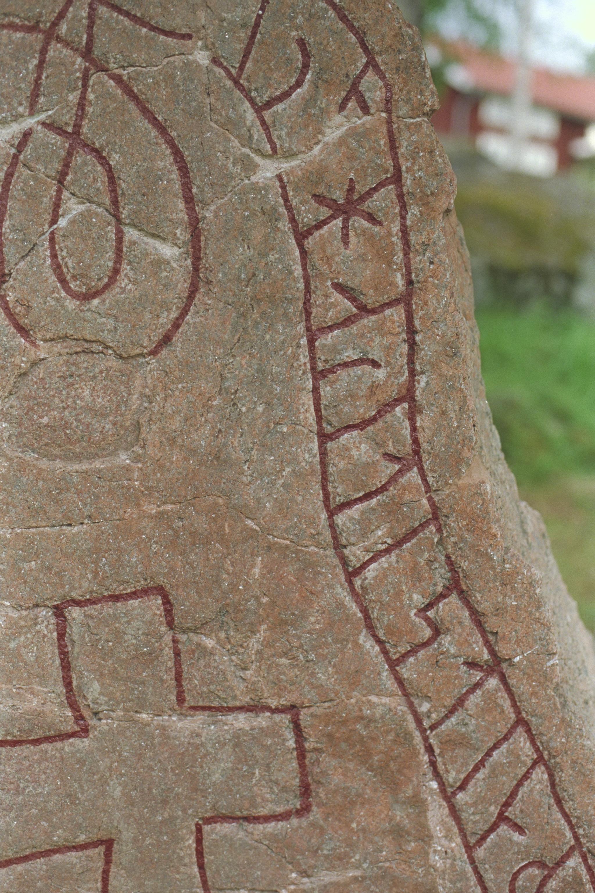 • RAÄ-nummer Tuna 2:1. Detalj av runstenen rest vid Torkarlsbergets hembygdsgård.