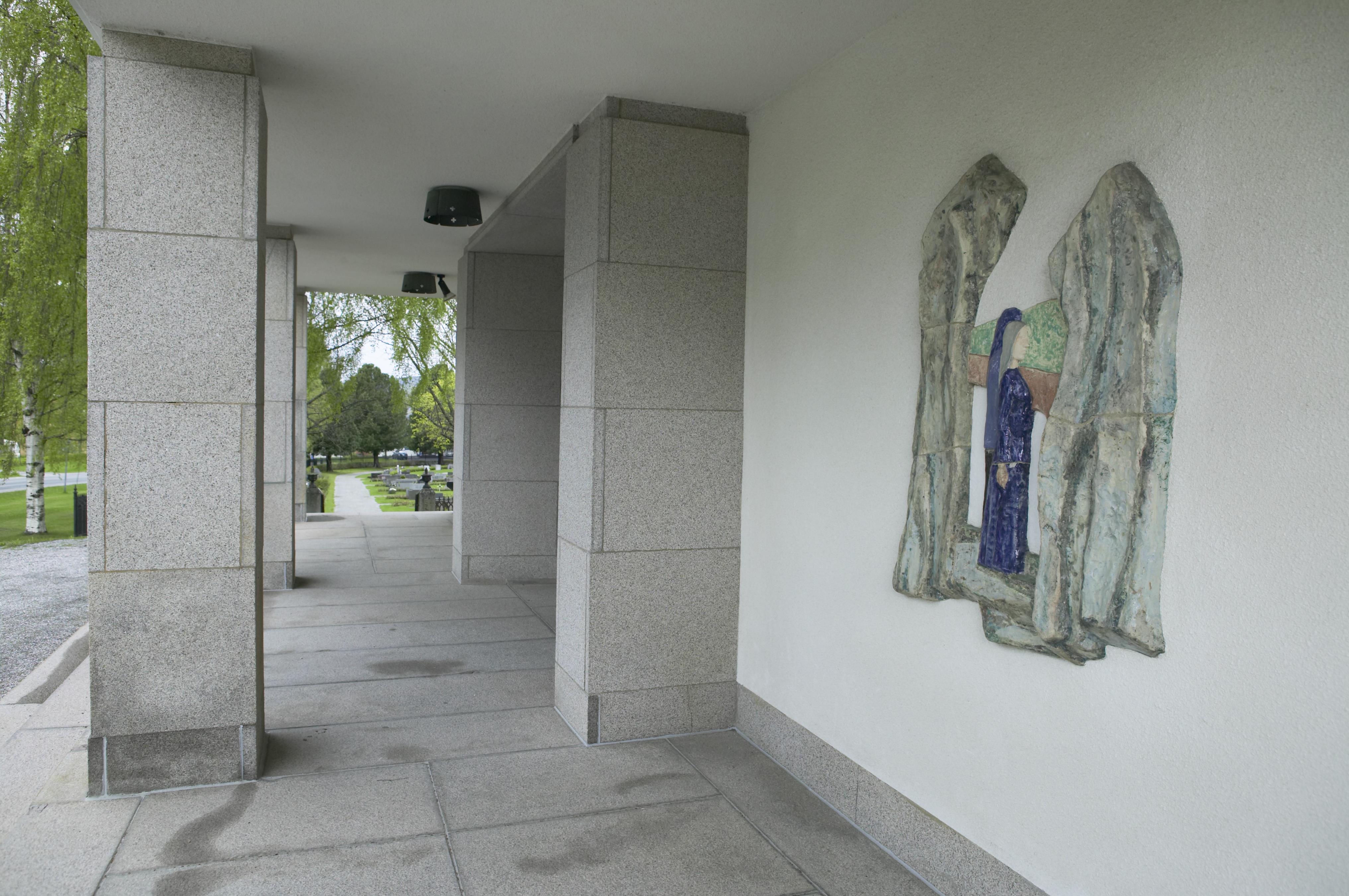• Vid ingången till kapellet finns två keramikreliefer av konstnären Harry Sandberg föreställande livets källa och Maria, gående bort från graven efter att ha fått visshet om Kristi uppståndelse.