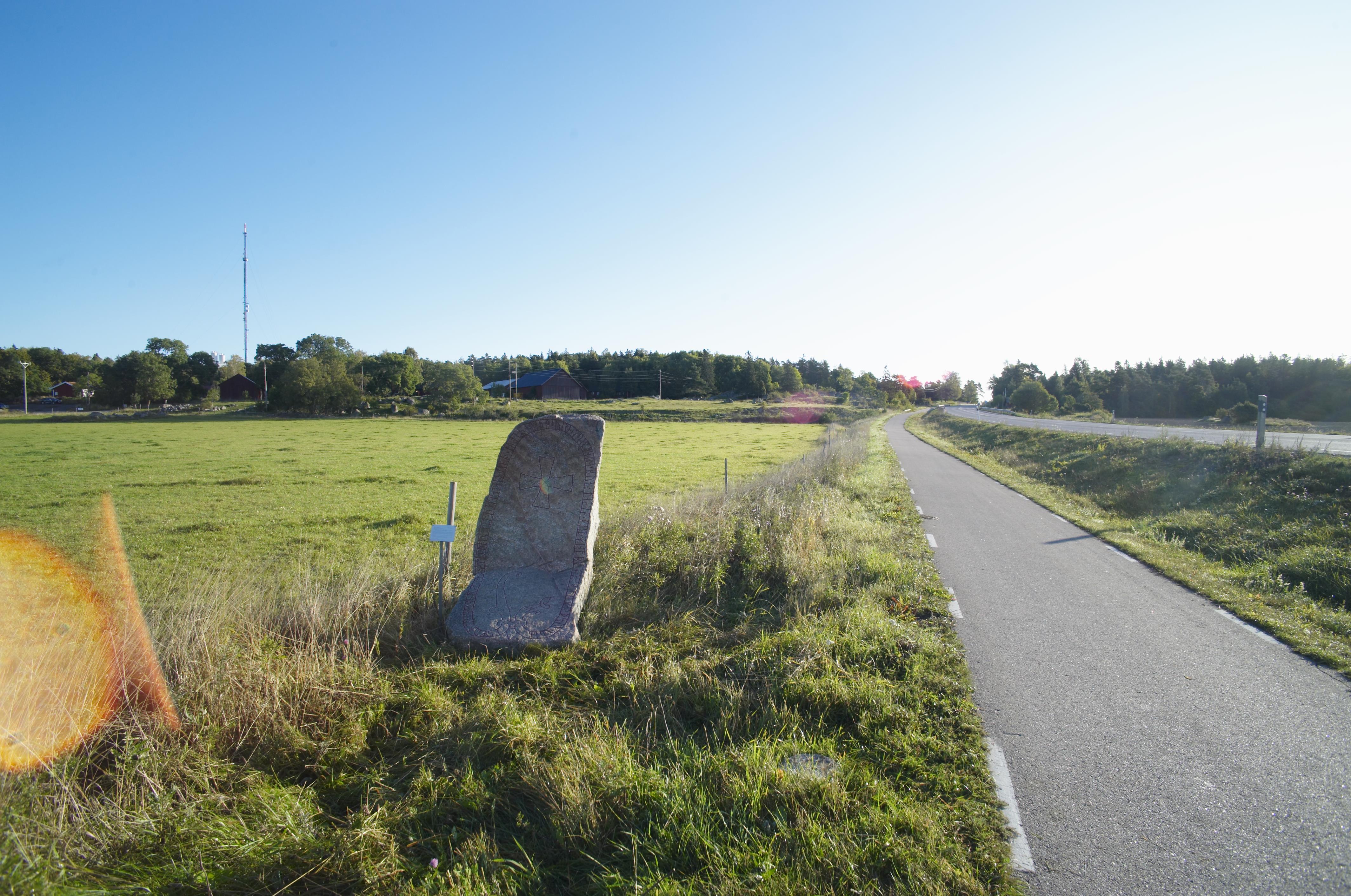 • RAÄ-nummer Danmark 4:1. Inskriften lyder: : "Stenhild lät resa denna sten efter Vidbjörn greklandsfarare, sin man. Gud och Guds moder hjälpe hans själ. Åsmund Kåreson ristade."