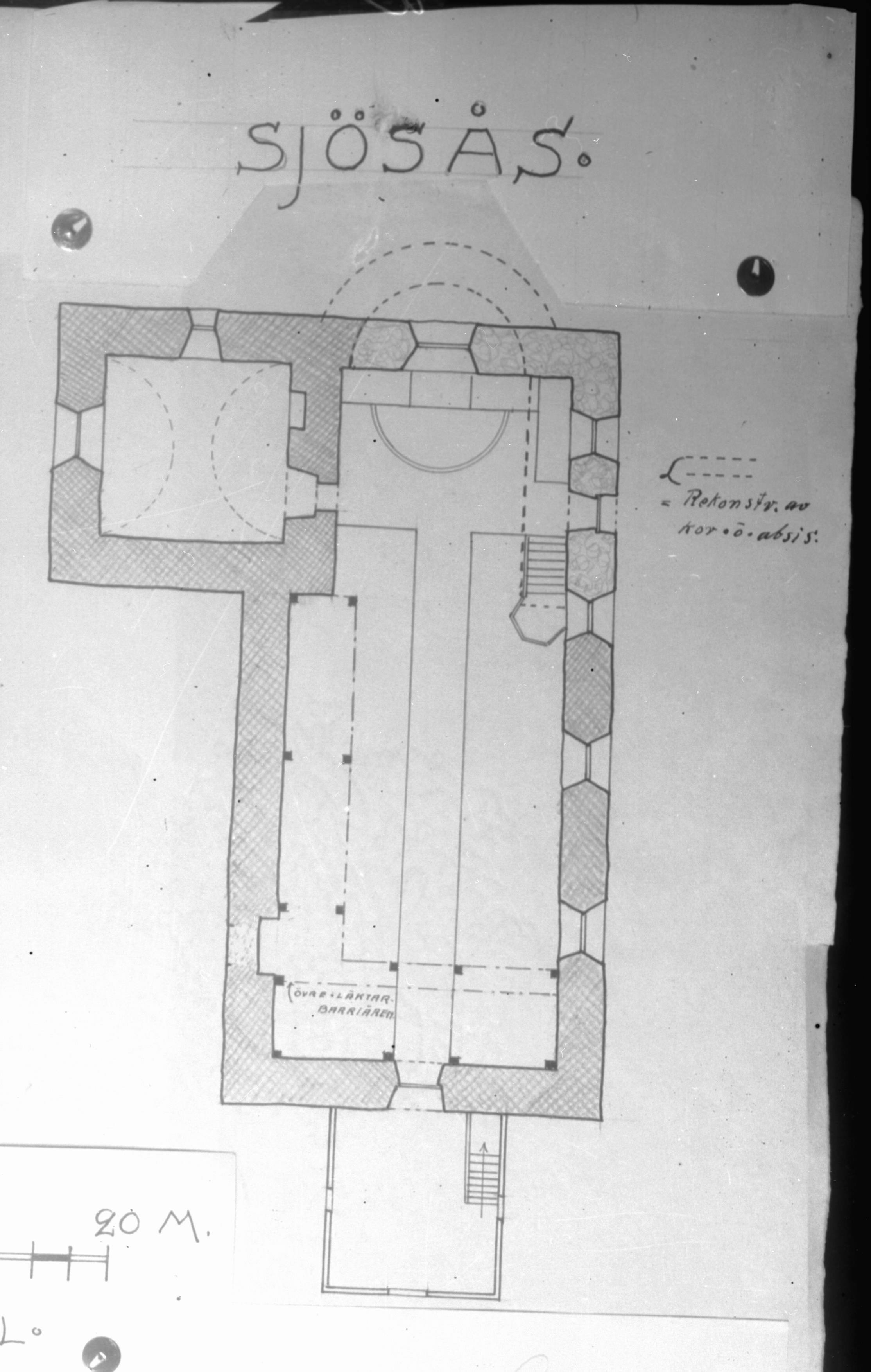 • Planritning, foto efter uppmätningsritning av Sven Brandel.