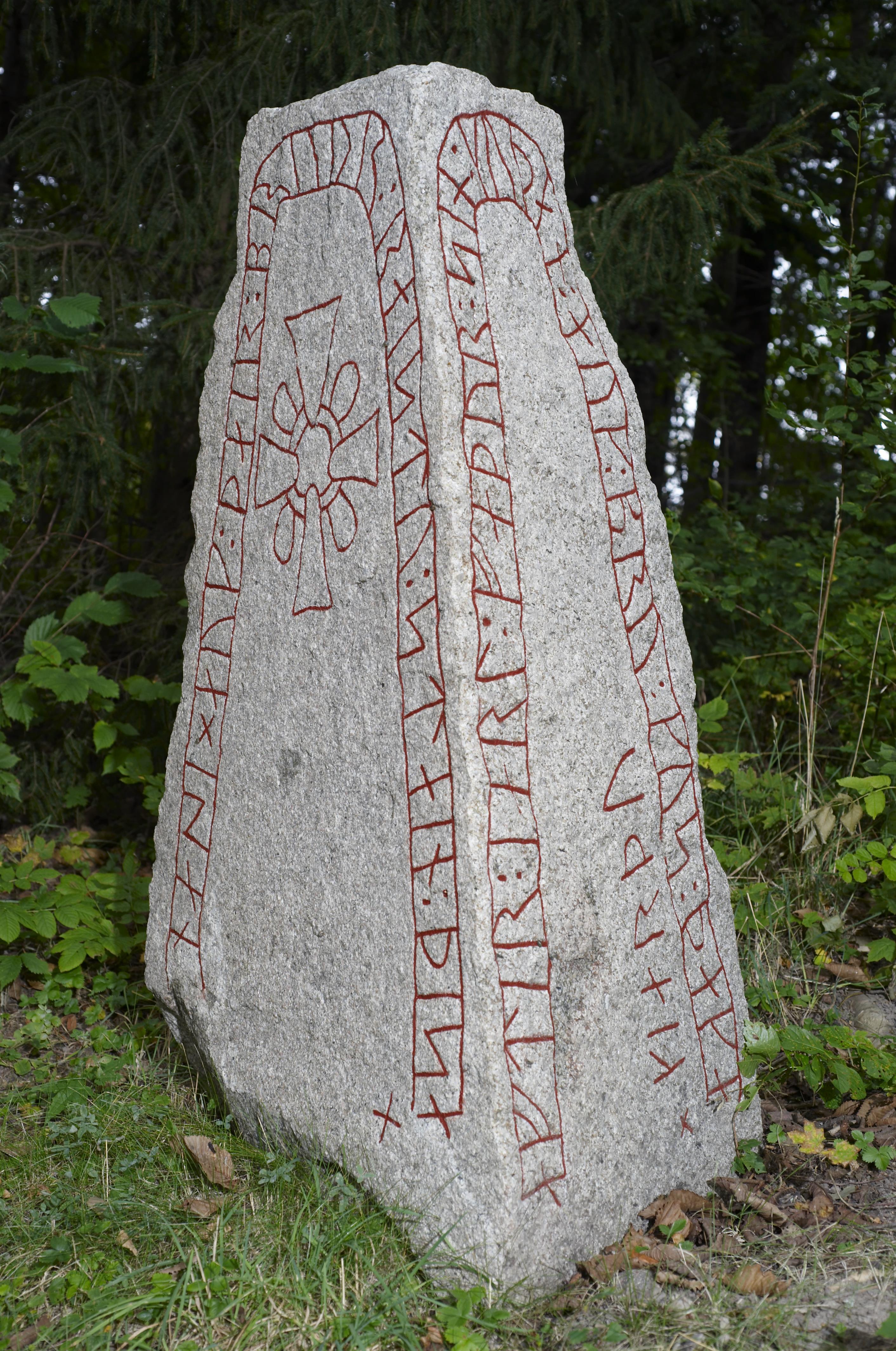 RAÄ-nummer Lena 162:1. Av de tre sidorna är två försedda med ristning. Inskriften lyder: " Nase och hans bröder reste denna sten till minne av Jarl, sin gode fader, och de gjorde bron till Guds behag". Fotosyfte: Dokumentation