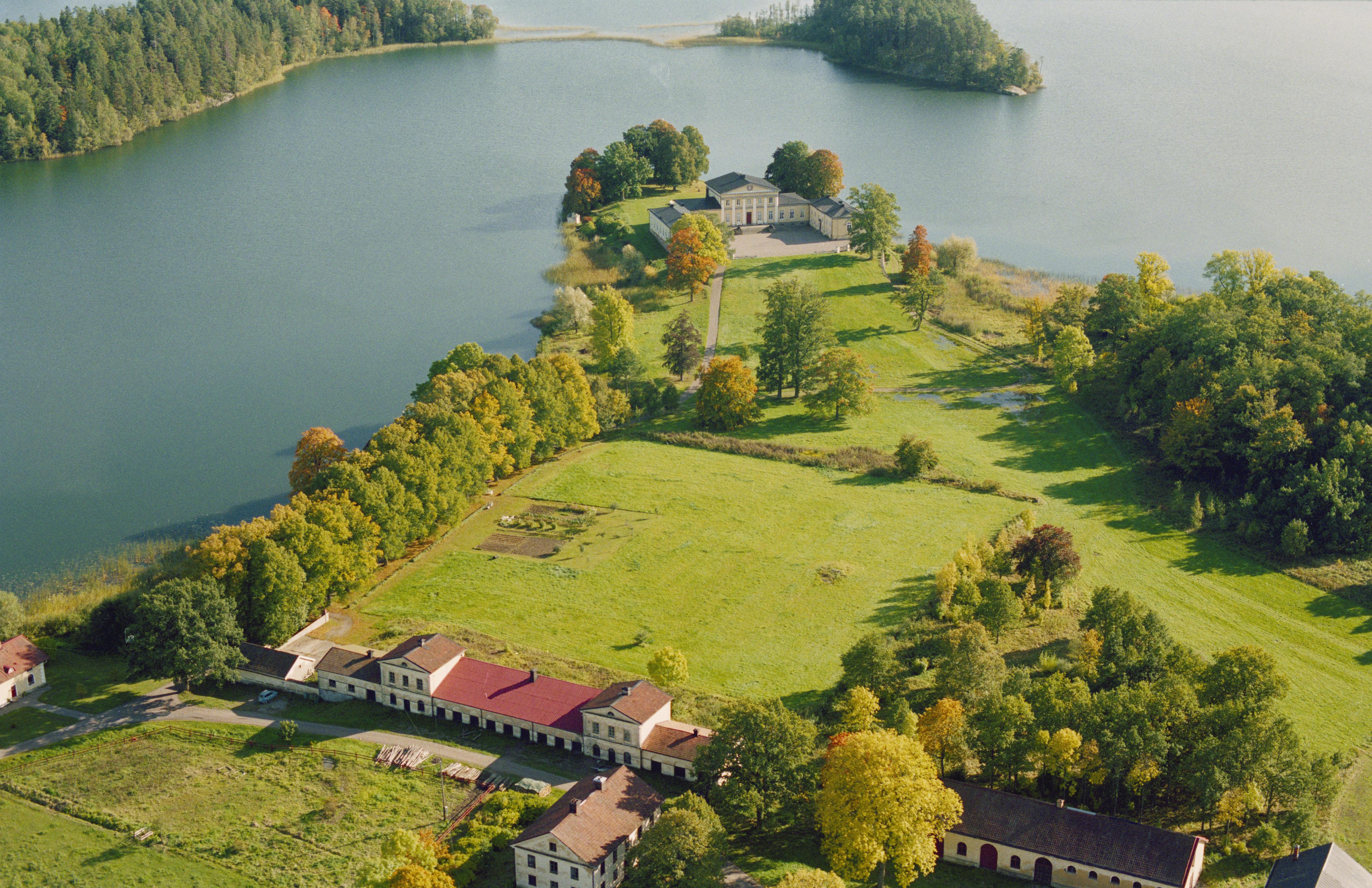 • Elghammars herrgård (skrivs även Älghammar) byggnadsminne RAÄnr Björnlunda 148:1. I bildens övre del Engelska udden vid sjön Lockvattnet. Bilden är tagen mot (väderstreck): SO