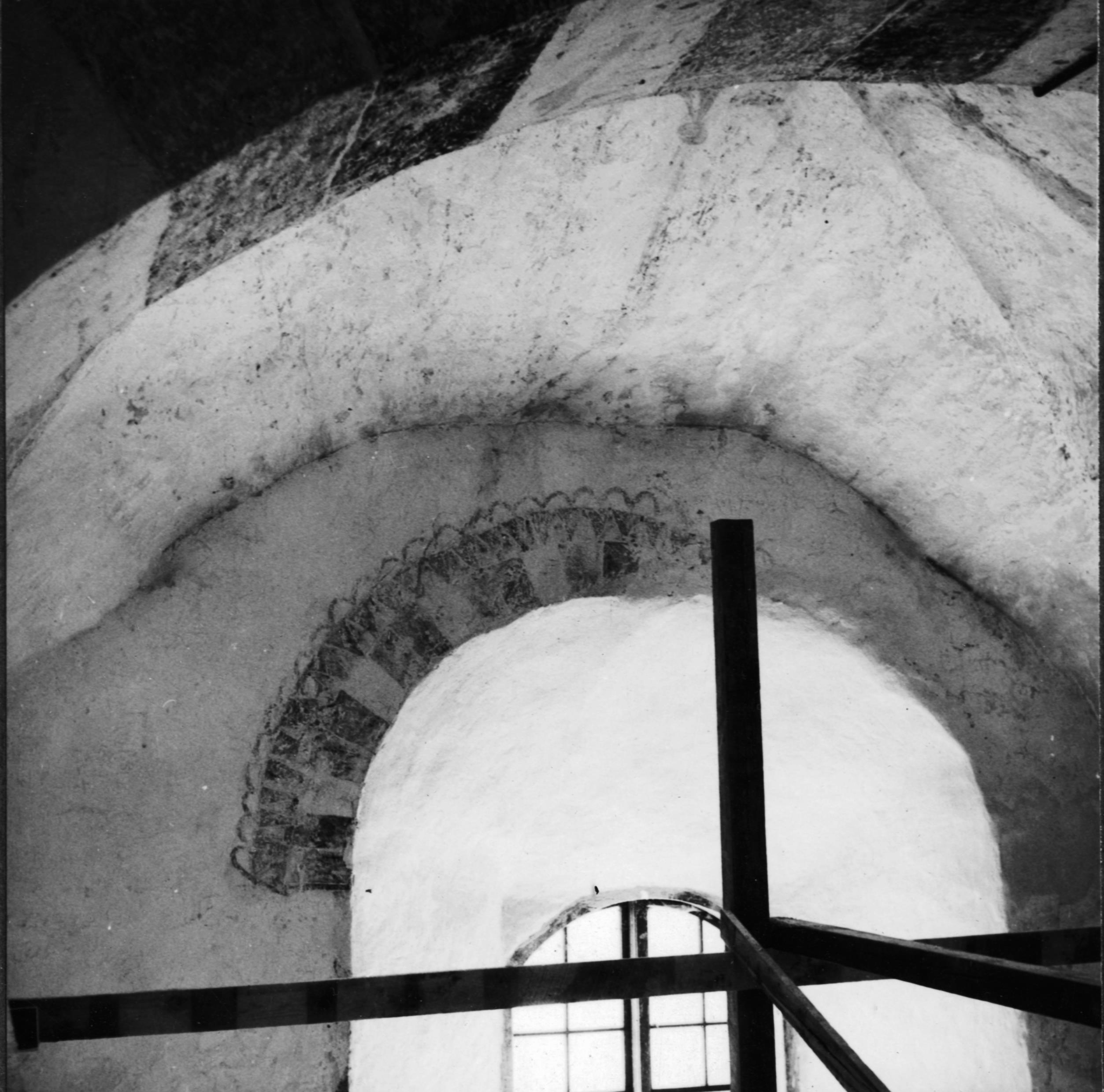 • Kalkmålning på långhusets södra mur. Sydöstra fönstret.