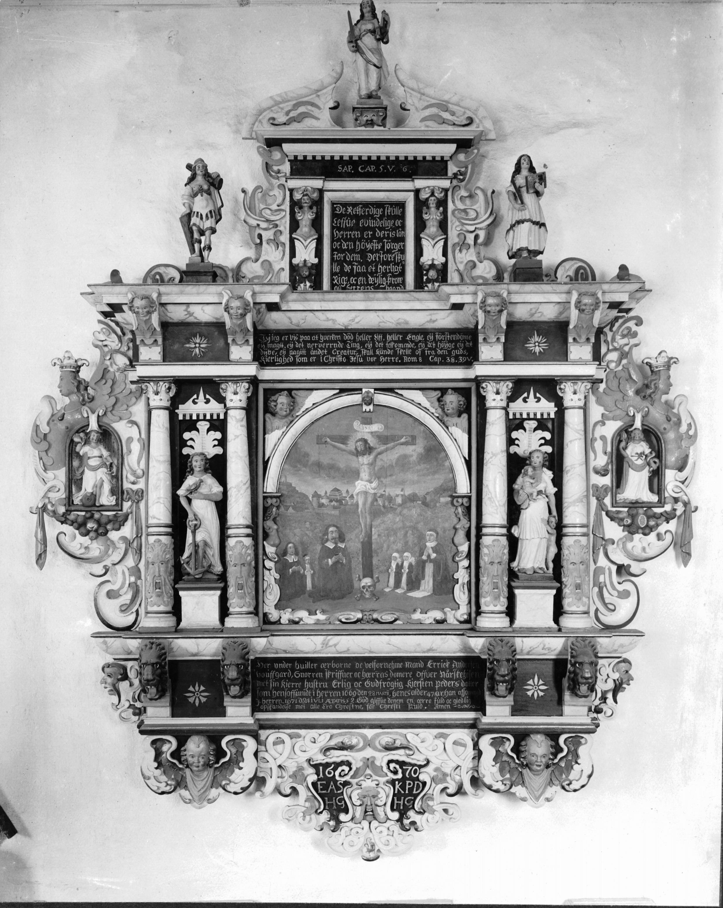 • Epitafium över häradsdomaren Erik Andersson i Hovgård, död 1671.