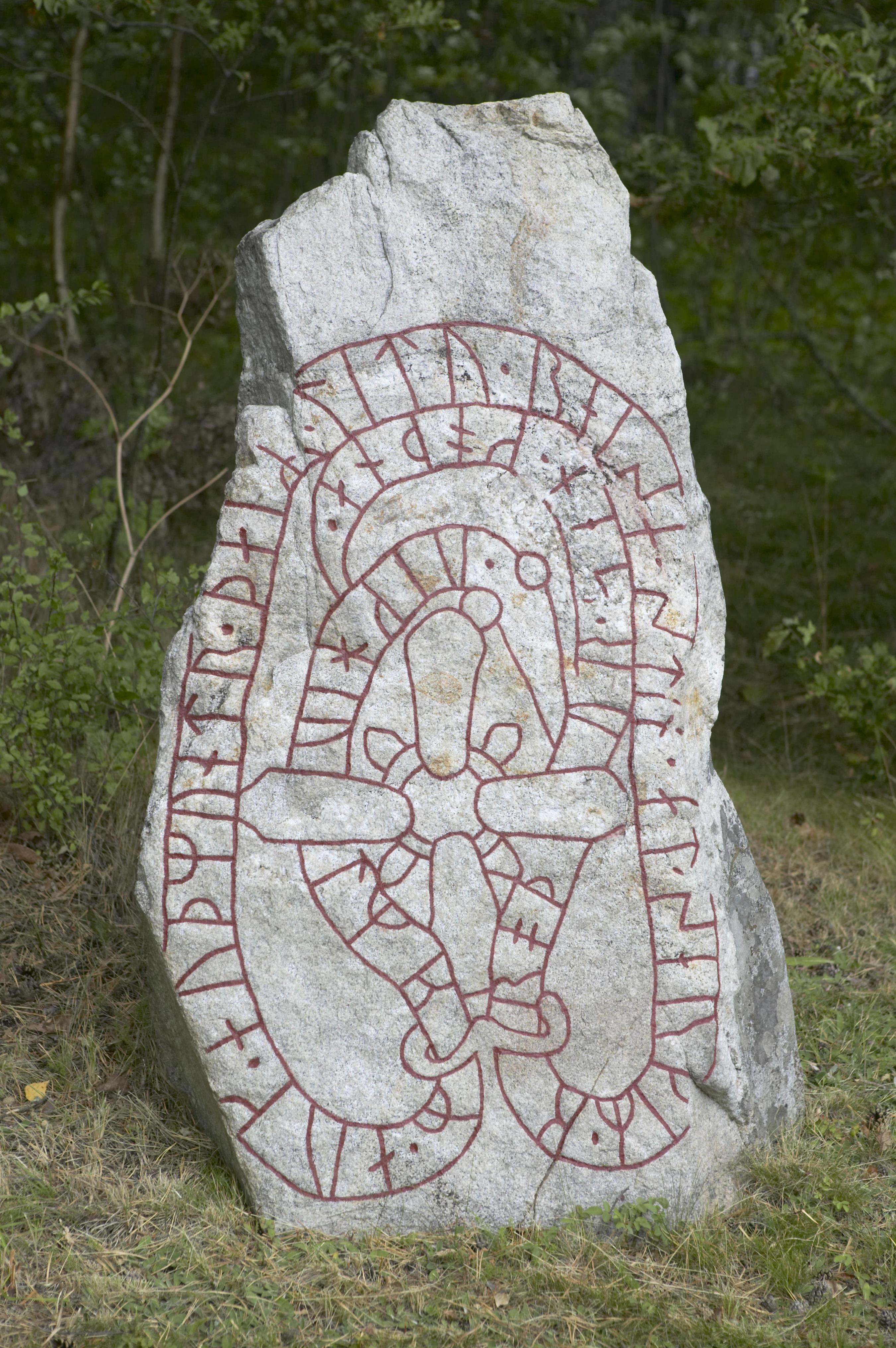 Inskriften lyder: Gudr.. sin fader. Han for manligen till England. Gud hjälpe hans själ. Fotosyfte: Bildarkivet
